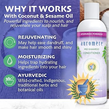 Auromere Ayurvedic Pre-Shampoo Conditioner - Vegan, Cruelty Free, Natural, Non GMO, Moisturizing, Paraben Free, Sulfate Free, All Natural Hair Conditioning Oil for All Types of Hair (7 fl oz), 1 pack