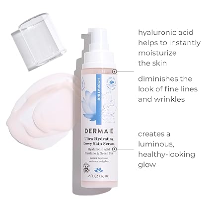 DERMA E Ultra Hydrating Dewy Skin Serum � Moisturizing Facial Treatment with Anti-Aging Squalane, Hyaluronic Acid and Ceramides to Smooth and Replenish, 2 FL Oz