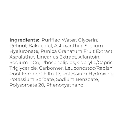ALL NATURAL FORMULA: Packed full of natural ingredients: Vitamin A promotes skin renewal and exfoliation; Bakuchiol soothes, smooths, and calms, and Pomegranate Extract improves skin tone and texture.