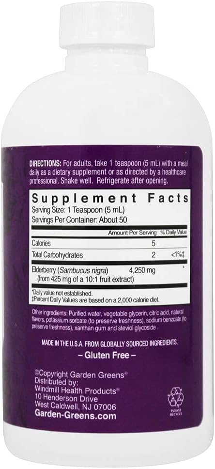 Made Only With The Finest Elderberries: Unlike other commercially sold elderberry products, Garden Greens Elderberry is processed and manufactured only with all-natural black elderberries and other natural ingredients