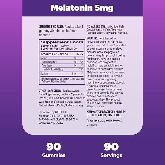 Sleep Support: One 90 count bottle of Natrol Melatonin Sleep Support(1) for Adults 5 mg strawberry-flavored gummies for a 45-day supply