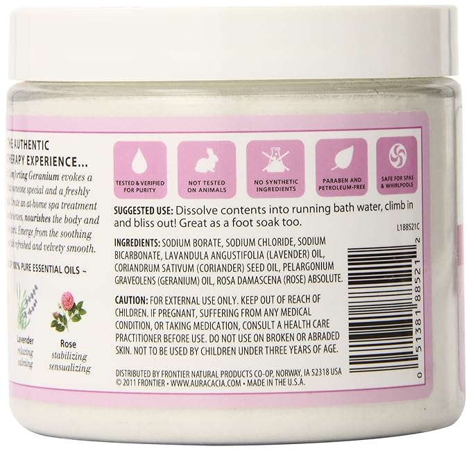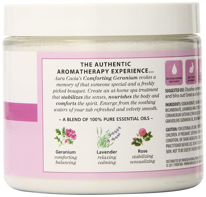 Aura Cacia Aromatherapy Mineral Bath, Comforting Geranium, 16 ounce jar