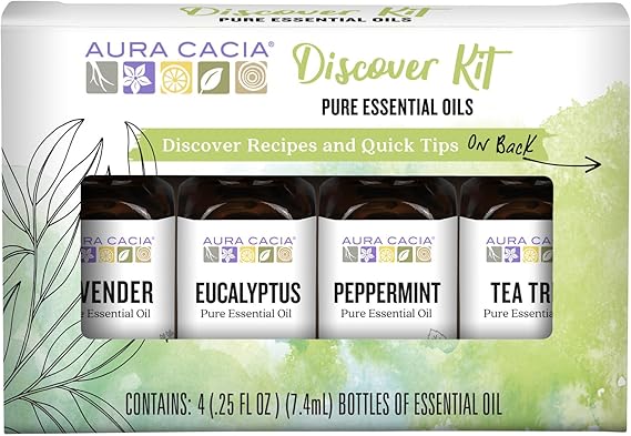 ESSENTIAL OIL STARTER KIT - New to the world of aromatherapy and essential oils? Checkout our essential oils kit specially crafted for new users and essential oil gurus alike. Aura Cacia Discover Essential Oils Kit helps new users discover four popular and versatile oils in one convenient package.