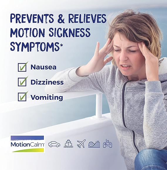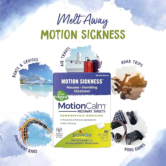 Boiron MotionCalm Relief for Nausea, Vomiting, or Dizziness associated with Motion Sickness Due to Travel, Amusement Rides, and Video Games or VR - Non-Drowsy - 60 Count