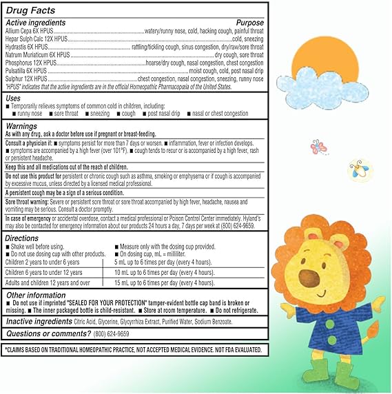RELIEF OF COMMON COLD: Naturally relieves the symptoms of the common cold including nasal and chest congestion, runny nose, sore throat, sneezing and cough in children ages 2-12.