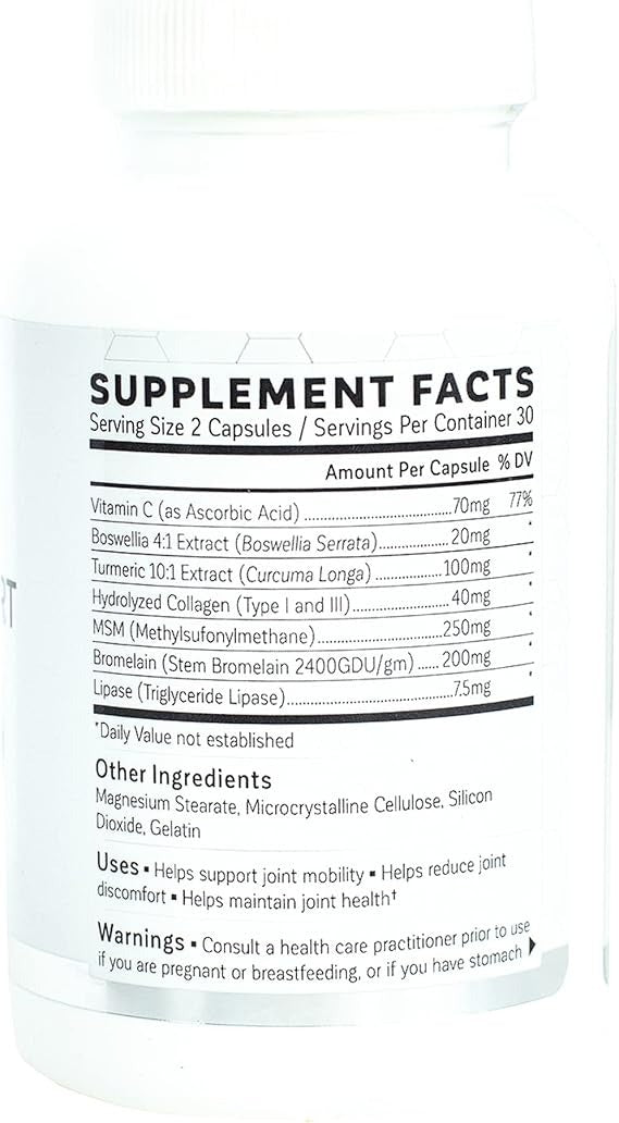 ENHANCED JOINT SUPPORT SUPPLEMENTS. Our capsules promotes joint mobility and overall joint health. Regular doses help to maintain healthy bones and immune function, aiding in collagen formation.