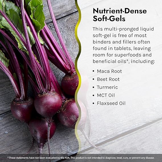 SUPERFOODS - Our formula also contains nutrient-dense superfoods and beneficial oils, including maca root, beet root, turmeric, medium chain triglycerides (MCT) oil, and flaxseed oil.