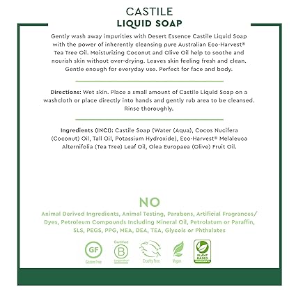 Desert Essence Castile Liquid Soap With Eco-Harvest Tea Tree Oil - 32 Fl Oz - Face & Body Cleansing - Coconut & Olive Oil - May Diminish Imperfections & Help Reduce Oil