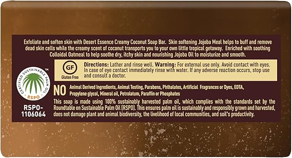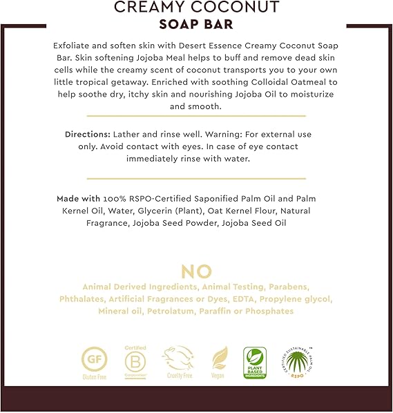 Delightful scent - this paraben-free soap bar by desert essence leaves a refreshing scent of coconut on your body, which keeps you rejuvenated all day long