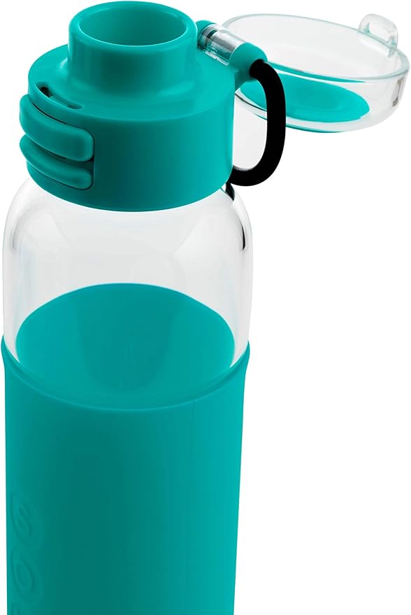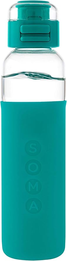 SOMA Glass Water Bottle with Silicone Sleeve, Sport Cap, 17-ounce, Aqua