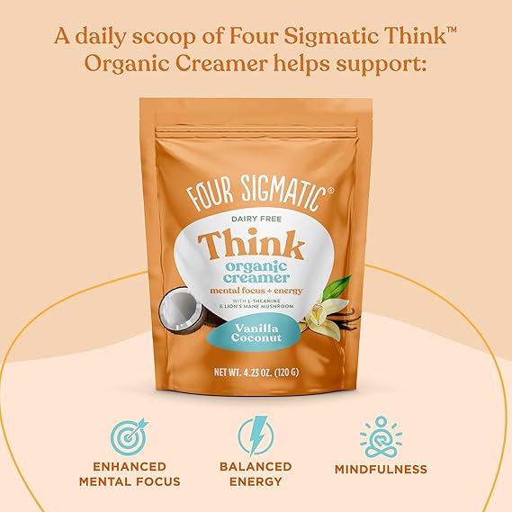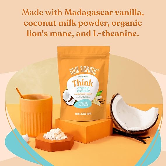 Think Vanilla Coconut Coffee Creamer by Four Sigmatic | Organic Coffee Creamer with Lion�s Mane and L-theanine | Powdered Coconut Creamer | Non Dairy Creamer Powder | 4.23 oz