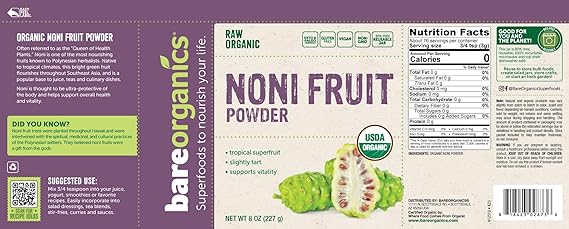 BareOrganics Noni Fruit Powder, 8 Ounce