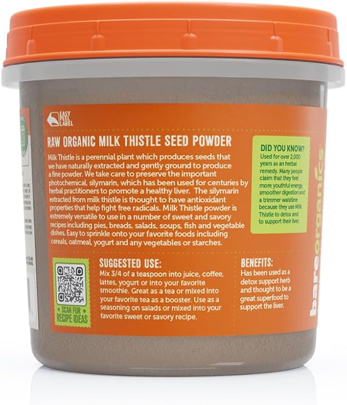 Organic Milk Thistle Powder: The liver works diligently to rid the body of potentially harmful substances. This powder is a natural way to support liver health already within a normal range so it can continue working hard to help you feel your best.