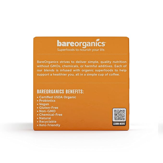 Superfood Infused Coffee: BareOrganics strives to deliver wholesome, simple nutrition without GMOs, chemicals & other harmful additives. Our K-Cup blends incorporate nutritious superfoods to help you think, perform & feel your absolute best.