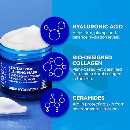 BENEFITS: With Bio-Designed Collagen and Hyaluronic Acid works overnight to help plump skin and boost hydration, while Ceramides aid in protecting skin from environmental stressors.