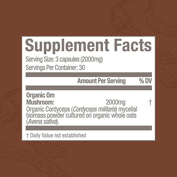 Om Mushroom Superfood Cordyceps Organic Mushroom Powder: Contains 90 capsules (30 day supply) of 100% certified organic mushroom cordyceps militaris fruit body and mycelial biomass powder cultured on organic oats for energy, stamina and energy