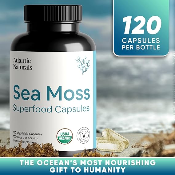120 CAPSULES PER BOTTLE: Enjoy a generous supply of sea moss supplement with every order. Each bottle contains 120 capsules of raw Sea Moss, providing a consistent dose every time. Our sea moss advanced superfood formula is produced in the USA.