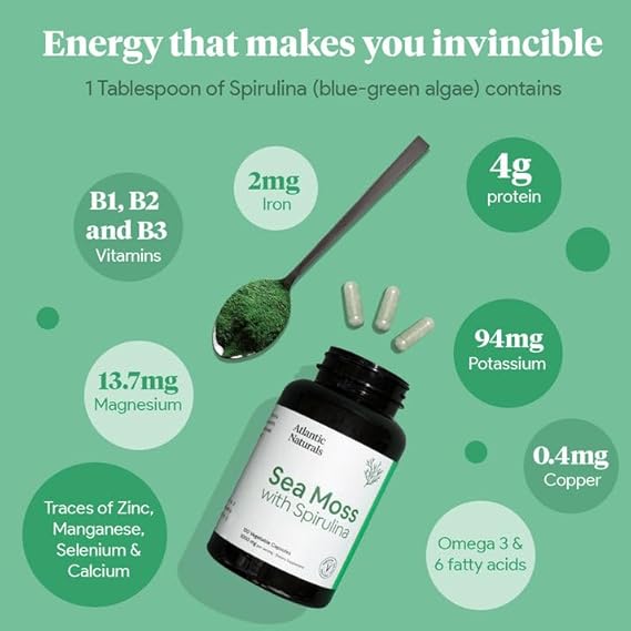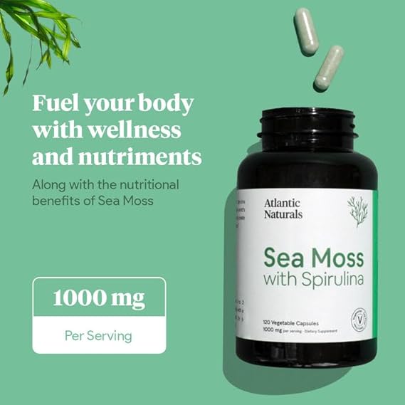 Atlantic Naturals Sea Moss with Spirulina Superfood Capsules - Sea Moss Supplement Supports Healthy Iron and Immune Health - Alternative to Sea Moss Gel and Powder - Irish Sea Moss Capsules (120 ct)